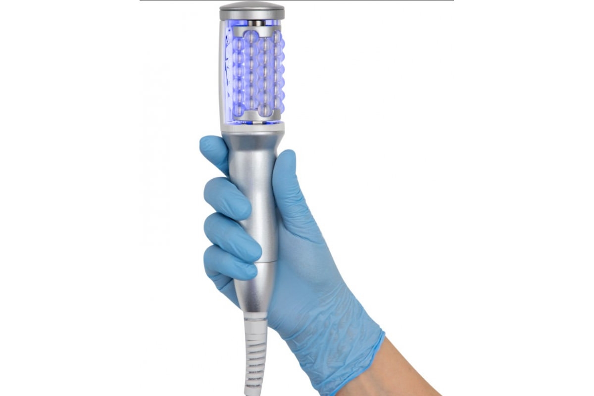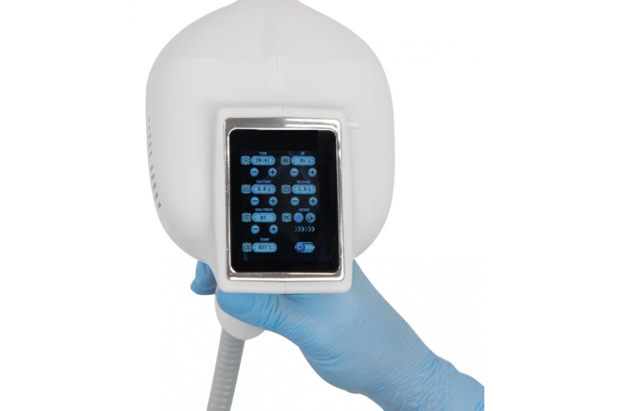 - Вакуумно-пульсирующий массаж с одновременным воздействием токов RF-частоты. Для этого предназначена 1 манипула, с помощью которой можно делать процедуры лифтинга, стимуляции процессов омоложения, лимфодренажа зонах лица, шеи, декольте.