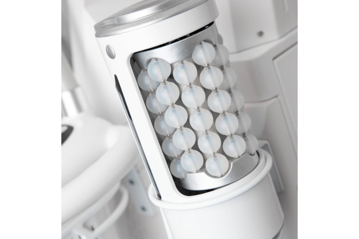 - у манипул увеличенное "окно" - значительная часть роликовой насадки открыта, тогда при движении манипул по телу ролики имеют большую свободу движения, это значительно лучше для косметолога и клиента;