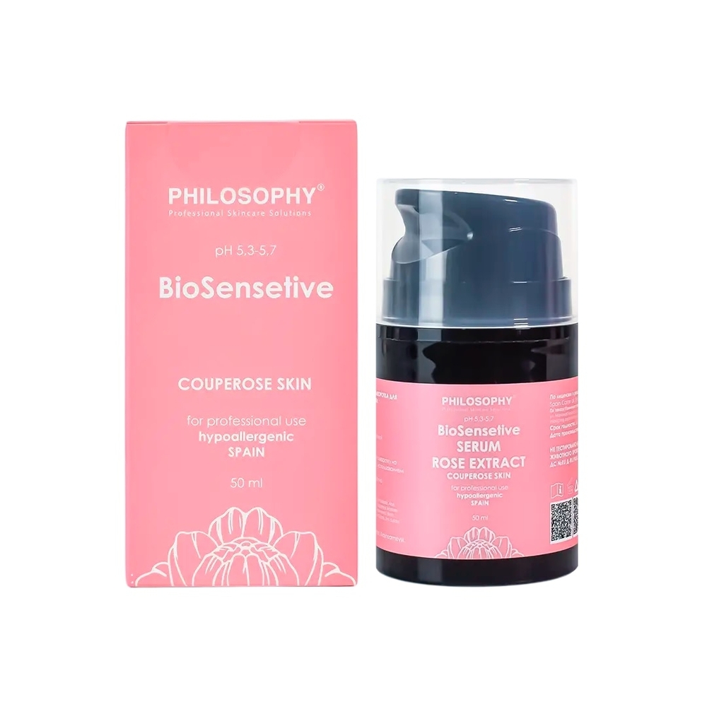 TM Philosophy Biosensetive Serum Rose Extract – это сыворотка для куперозной кожи, которая укрепляет стенки сосудов, снимает покраснения, улучшает цвет кожи, увлажняет и ухаживает за чувствительной кожей. Ее можно применять с помощью УЗ аппаратов, микротоков и гальваники, а также самостоятельно.
