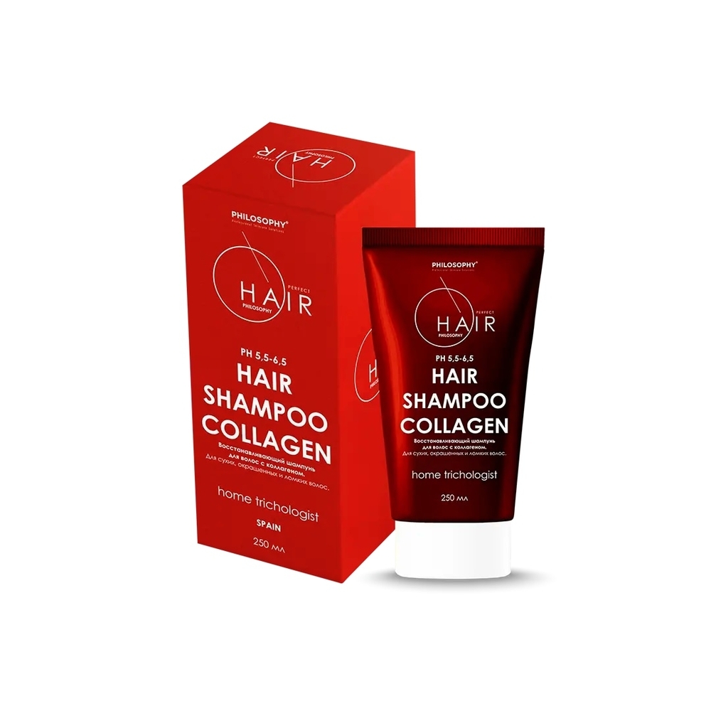 Hair Shampoo collagen 250 ml – восстанавливающий шампунь для волос с коллагеном, который деликатно очищает волосы и кожу головы, восстанавливает структуру волос, смягчает и увлажняет кожу головы, предотвращает оксидативный стресс, обеспечивает дополнительную защиту цвета и препятствует истощению структуры волос. Рекомендуется использовать в комплексе с термозащитной сывороткой и восстанавливающей маской для волос с коллагеном. Подходит для сухих, окрашенных и ломких волос.
